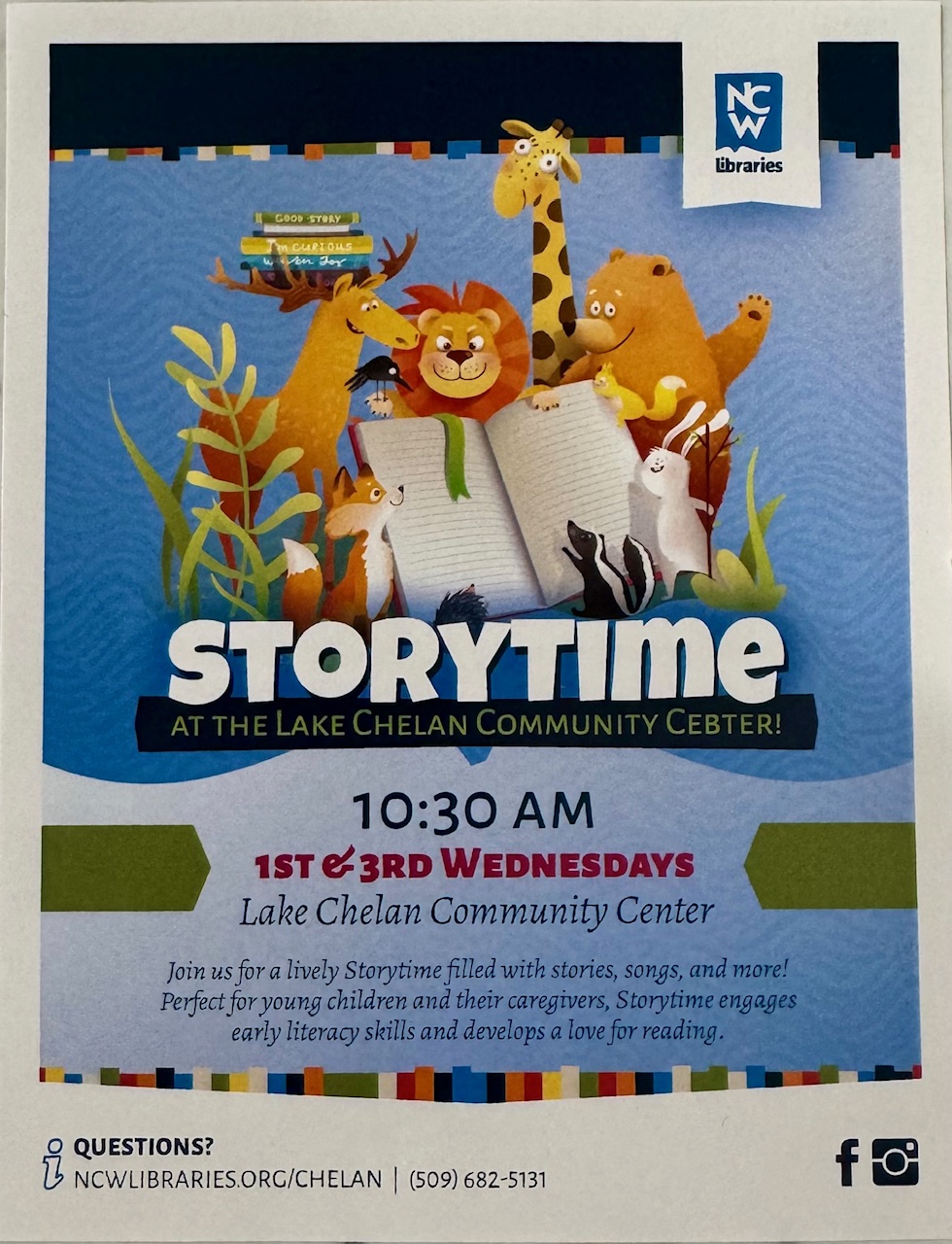 For more information about Storytime or other NCW Libraries programs, visit ncwlibraries.org/chelan or call (509) 682-5131.