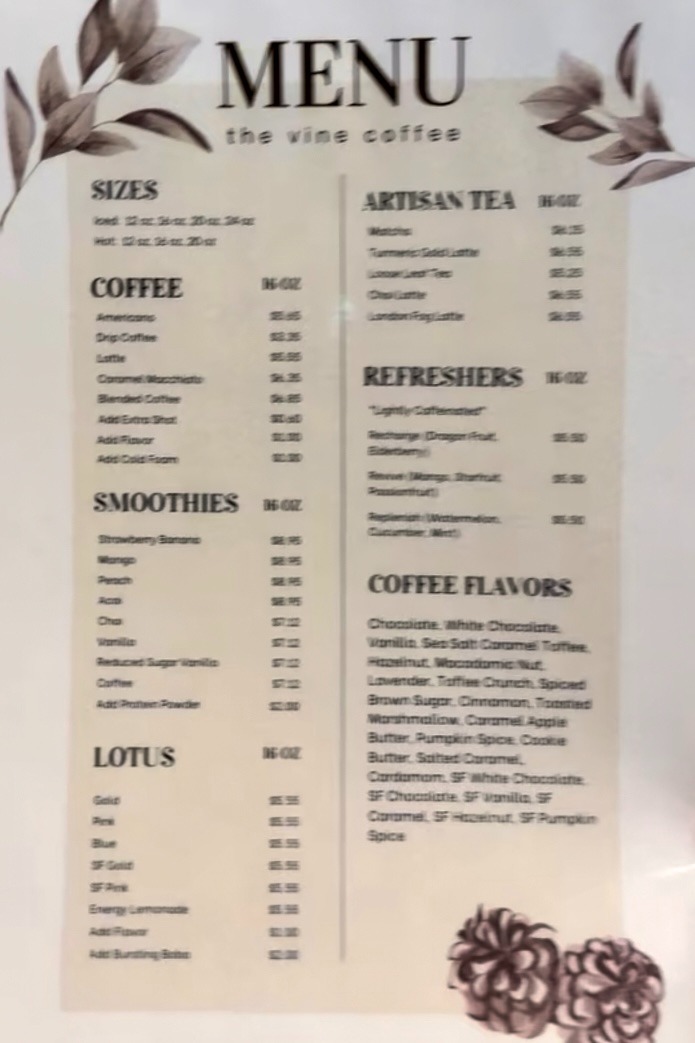 The Vine’s menu may read like a familiar list of lattes, teas, smoothies, and Lotus drinks, but Holly’s approach is anything but ordinary.